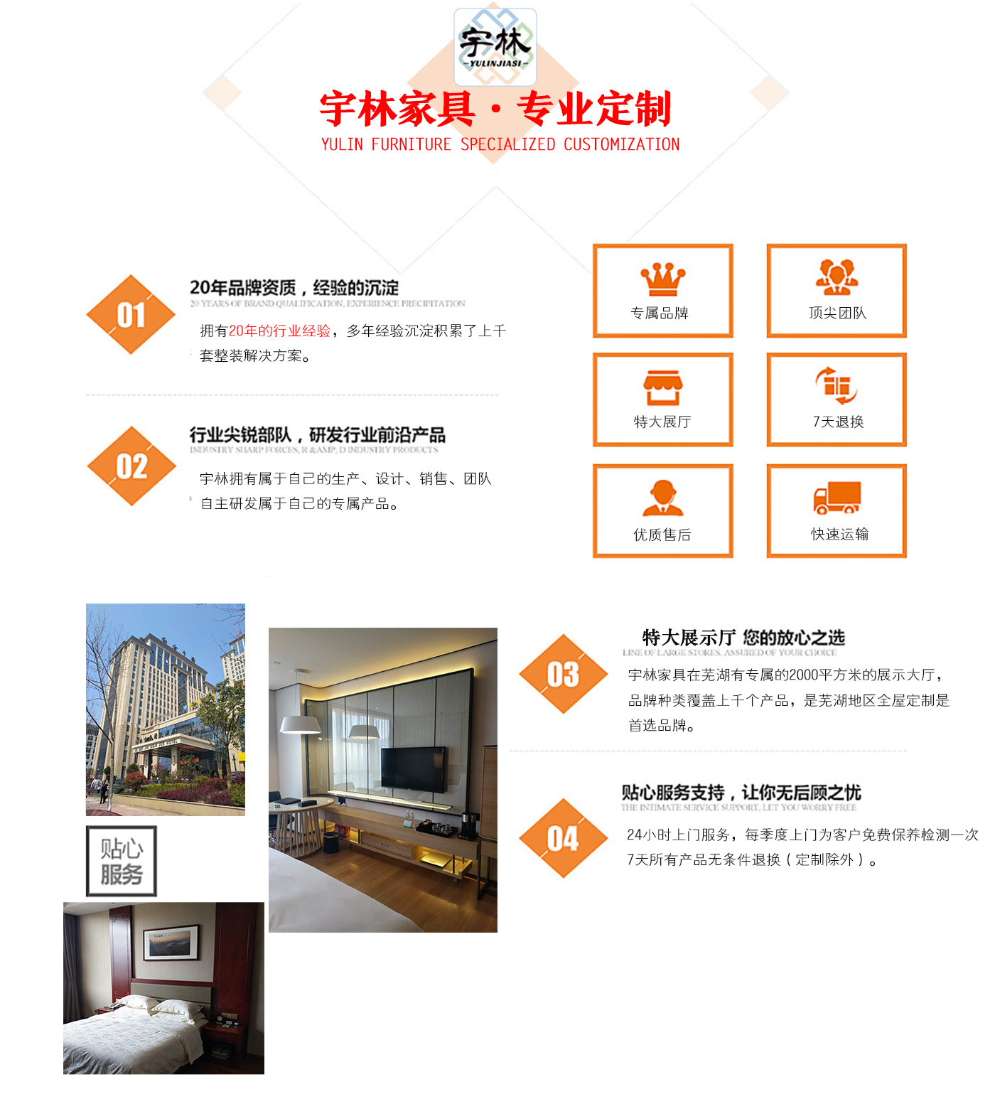 蕪湖宇林工貿(mào)有限公司創(chuàng)建于1996年,位于蕪湖高新技術(shù)開發(fā)區(qū)南區(qū),占地面積13000余平方米。是一個集研發(fā)、設(shè)計為一體的綜合性公司,公司主營整體家居定制、酒店家具定制、娛樂場所配套家具以及軟體系列,團(tuán)隊,銳意革新、進(jìn)去不息的理念,逐漸成為蕪湖家具行業(yè)的生產(chǎn)廠家,并在2006年注冊了“宇林”牌商標(biāo)。宇林品牌家具依現(xiàn)代與古典相結(jié)合的多種實木家具、實木貼皮家具。家具做工精細(xì),多用人工雕刻;其自然、典雅的風(fēng)格在很大程度上引導(dǎo)著人...